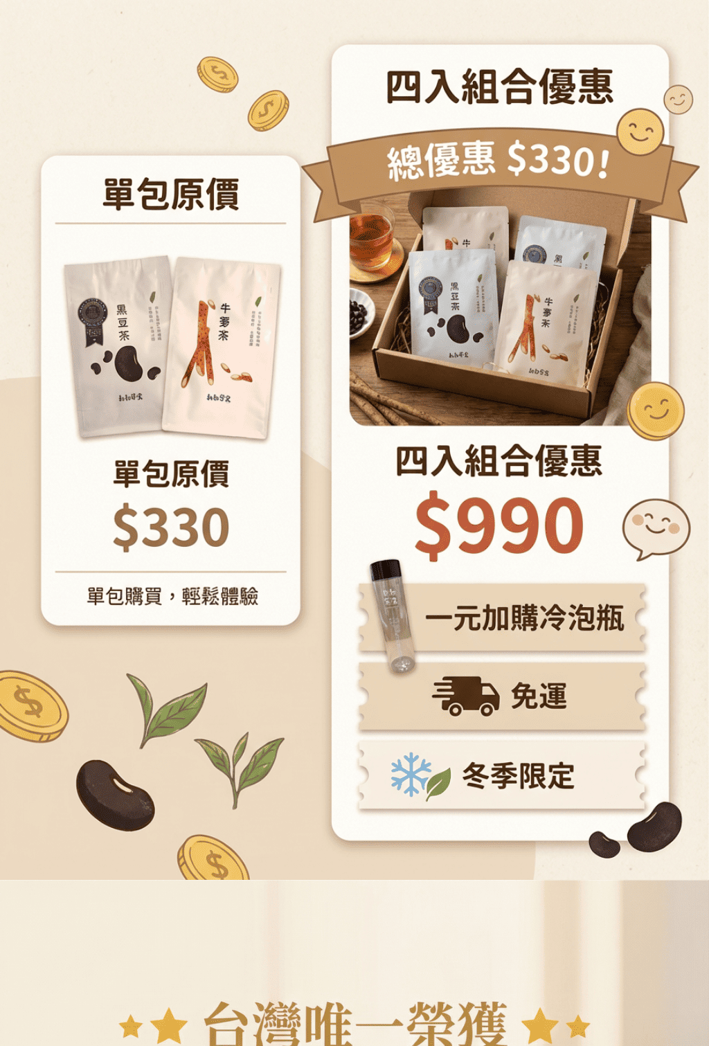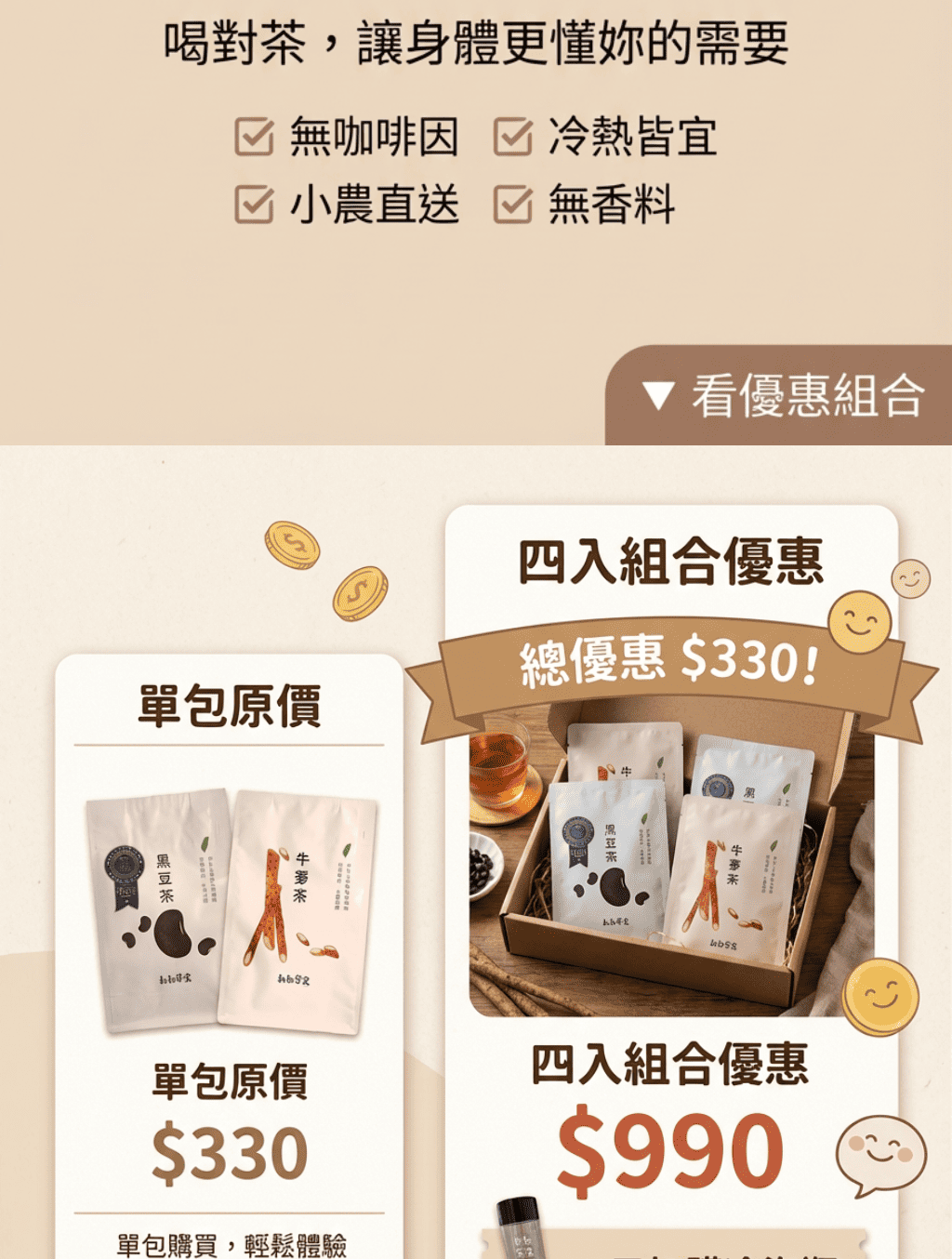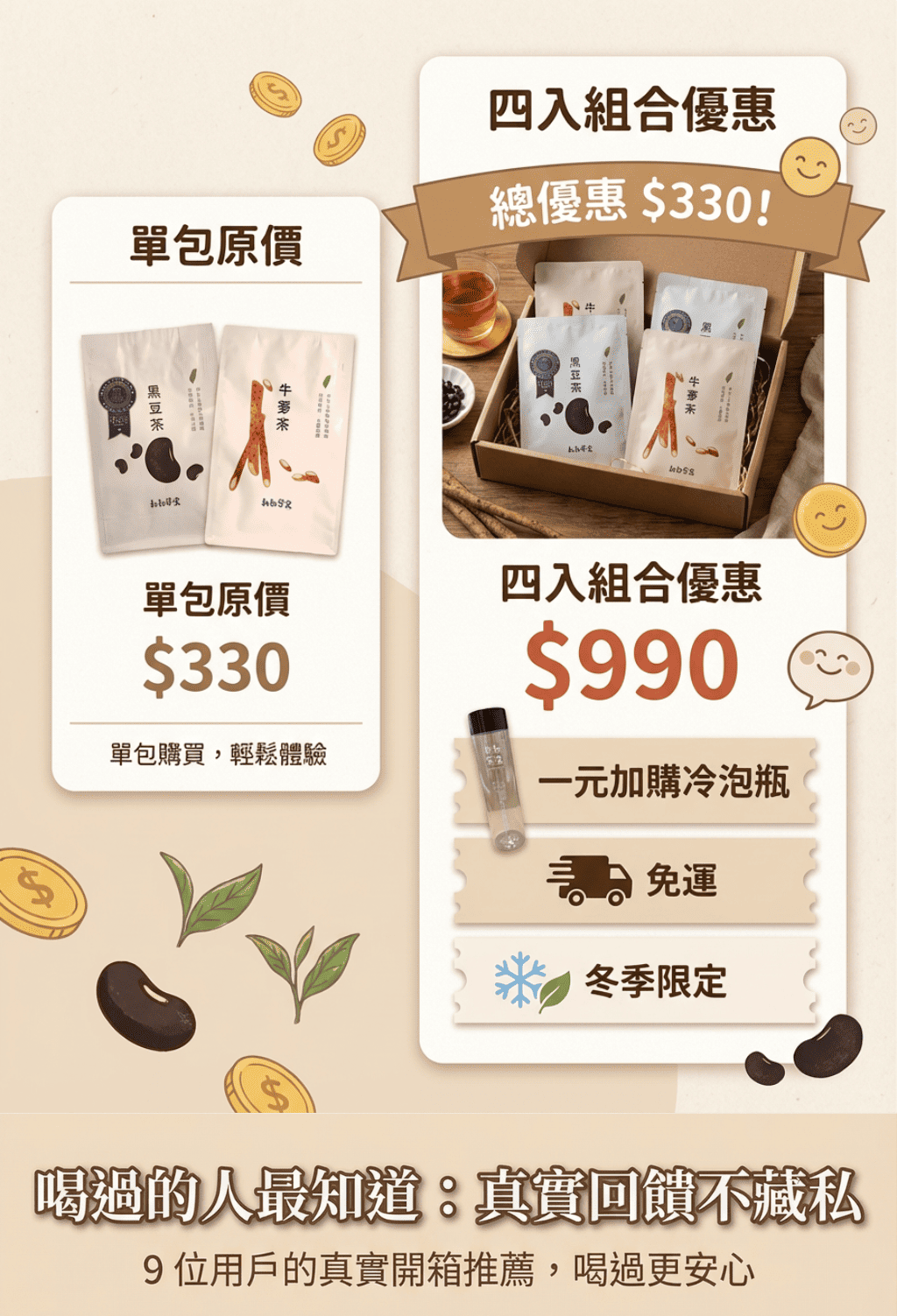 超值免運囤貨組|原粒黑豆茶/牛蒡茶 (任選4袋)|無咖啡因、促進代謝|天天喝只要銅板價