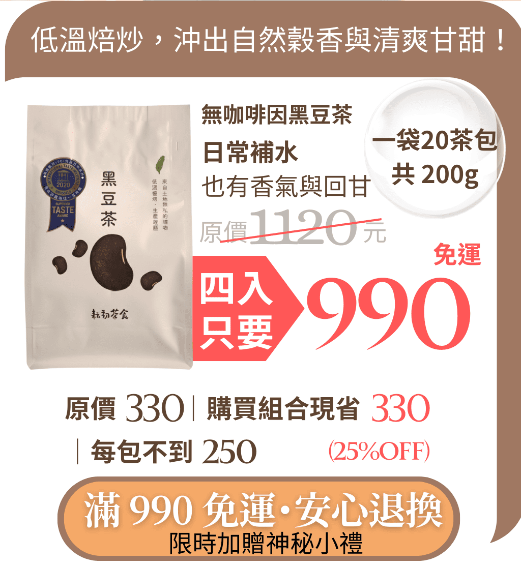 順時養纖【黑豆茶、牛蒡茶】四入組『免運商品組』,耘初茶食|無咖啡因穀物茶